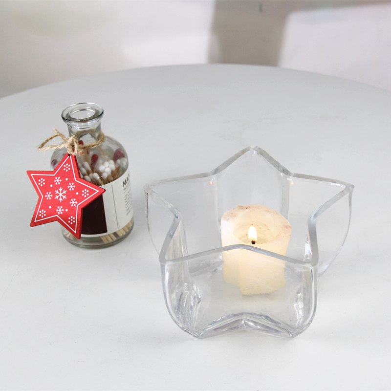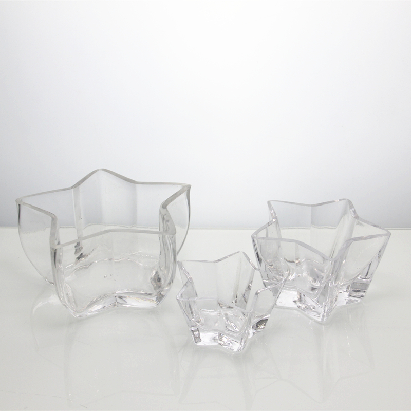 Illuminate your space with our dazzling Star-shaped Glass Candle Bowls. Available in large, medium, and small sizes to fit any room. Customize your color to match your style. Let our glass stars add a unique glow to your home decor.